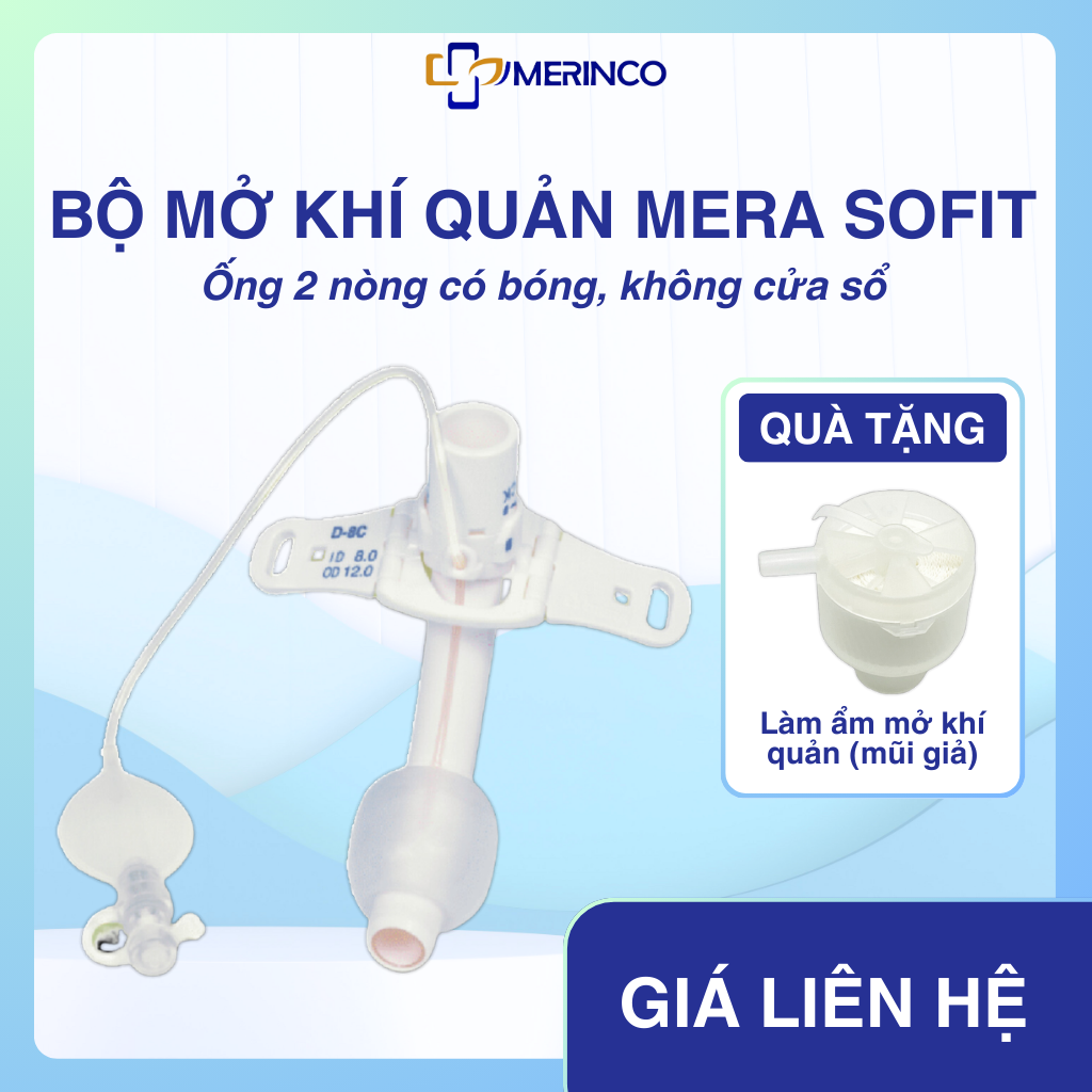 Ống mở khí quản 2 nòng có bóng MERA SOFIT D-C chất liệu y tế an toàn tuyệt đối theo tiêu chuẩn Nhật Bản. Ống mở khí quản có bóng nối với hệ thống thông khí nhân tạo để cung cấp khí thở cho bệnh nhân.